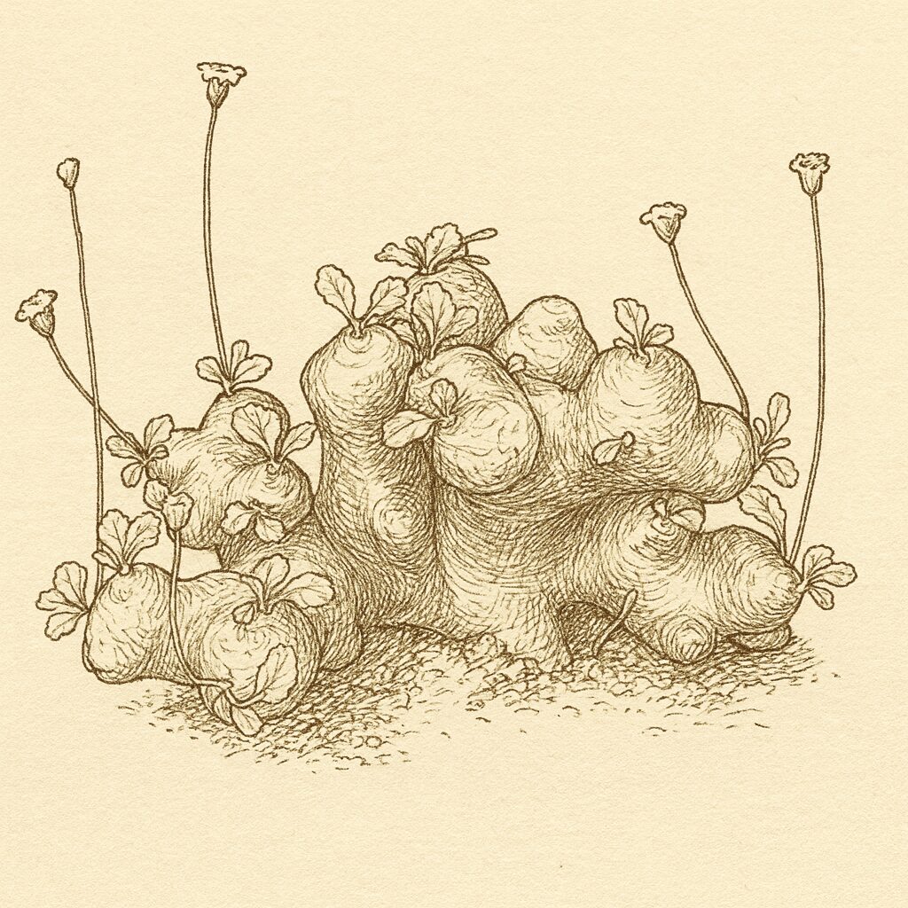 オトンナ・カカリオイデス―この植物のユニークな姿を見たら「かわいい!」と思わず声が出るはず。まん丸の塊根に、しゃもじのような小さな葉が茂り、生長期になると黄色くて小さな可憐な花を咲かせます。寒さにも強く、多少過湿な環境でも耐えてくれるそのタフさは、冬型塊根植物初心者にもぴったり。この記事では、そんなオトンナ・カカリオイデスの魅力と育て方を丁寧にご紹介します。
